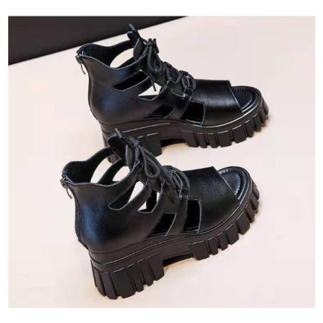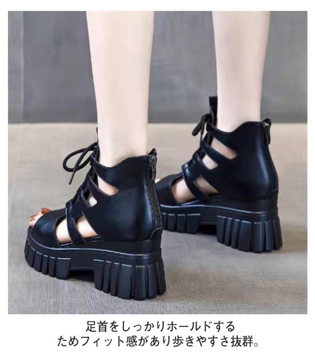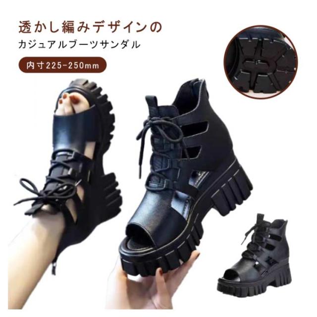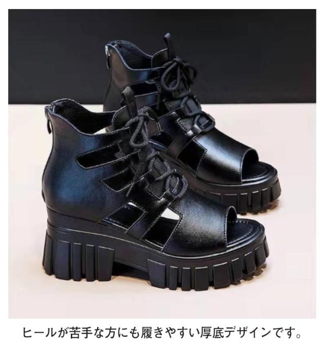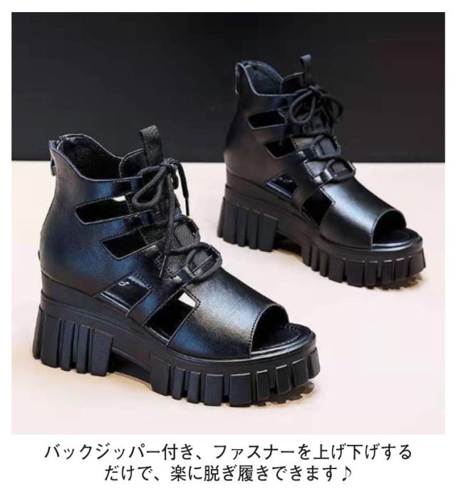 ブーツサンダル 厚底 レディース 編み上げ 美脚 歩きやすい サンダル レースアップ サマーブーツ 夏サンダル オープントゥ フェイクレザー バックジップ 大きいサイズ 滑り止め 大人 女性 透かし編み おしゃれ カジュアル ギフト プレゼント 送料無料