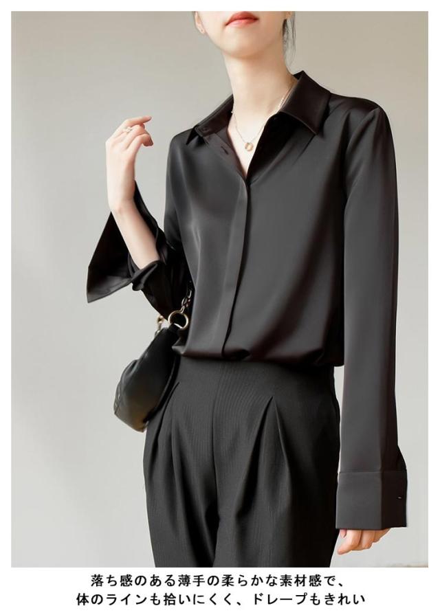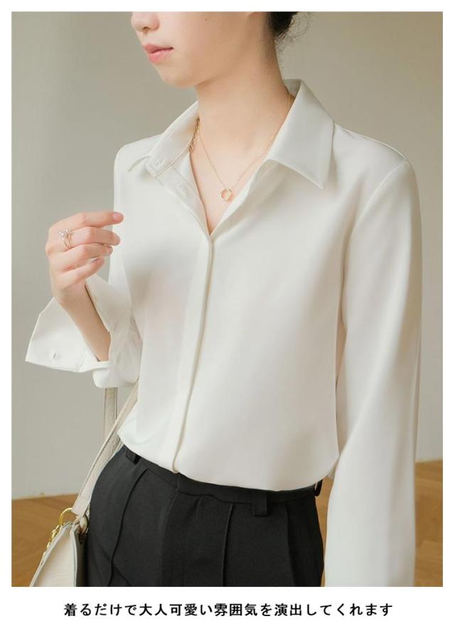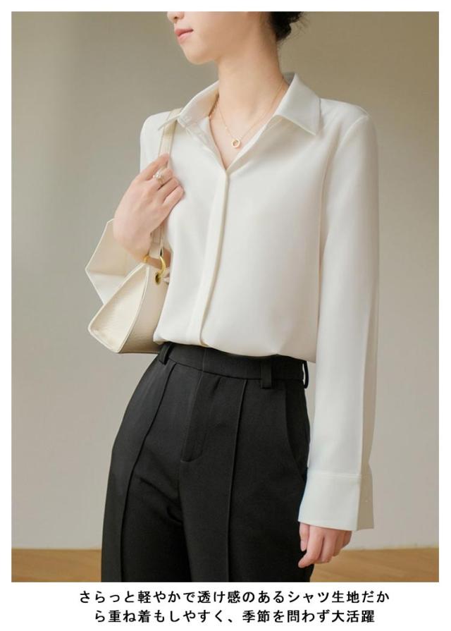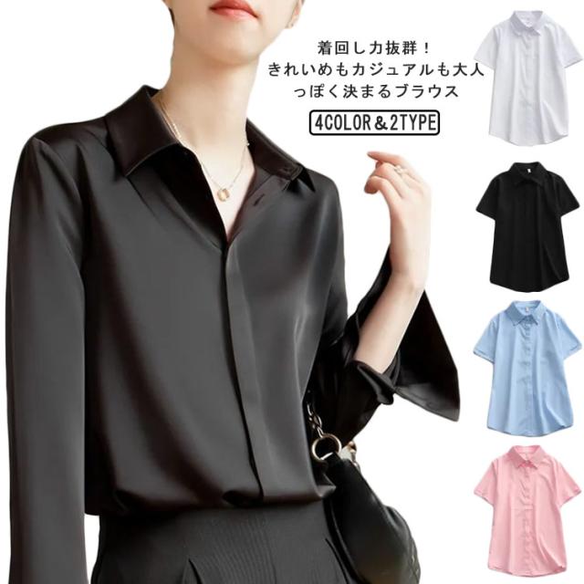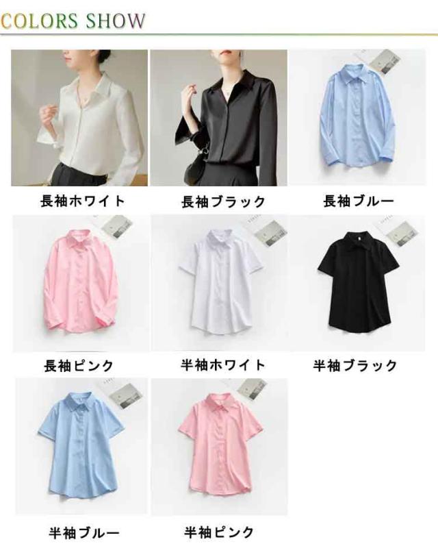 ワイシャツ シャツ かわいい オフィスカジュアル 無地 ブラウス 襟付き ワイシャツ 仕事 春夏用 トップス 前開き 通勤 長袖 レディース おしゃれ 夏 オフィス 大きめ きれいめ フォーマル 春 秋 着痩せ 上品 20代 30代 40代 韓国風 半袖