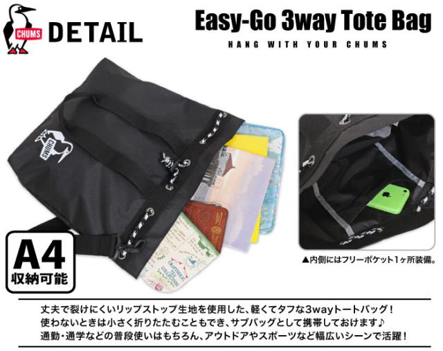 CHUMS チャムス イージーゴー3ウェイトートバッグ ショルダーバッグ 巾着バッグ 通勤 通学 軽量 サブバッグ アウトドア スポーツ キャンプ エコバッグ マザーズバッグ 折りたたみ A4 Easy-Go 3Way Tote Bag CH60-3297