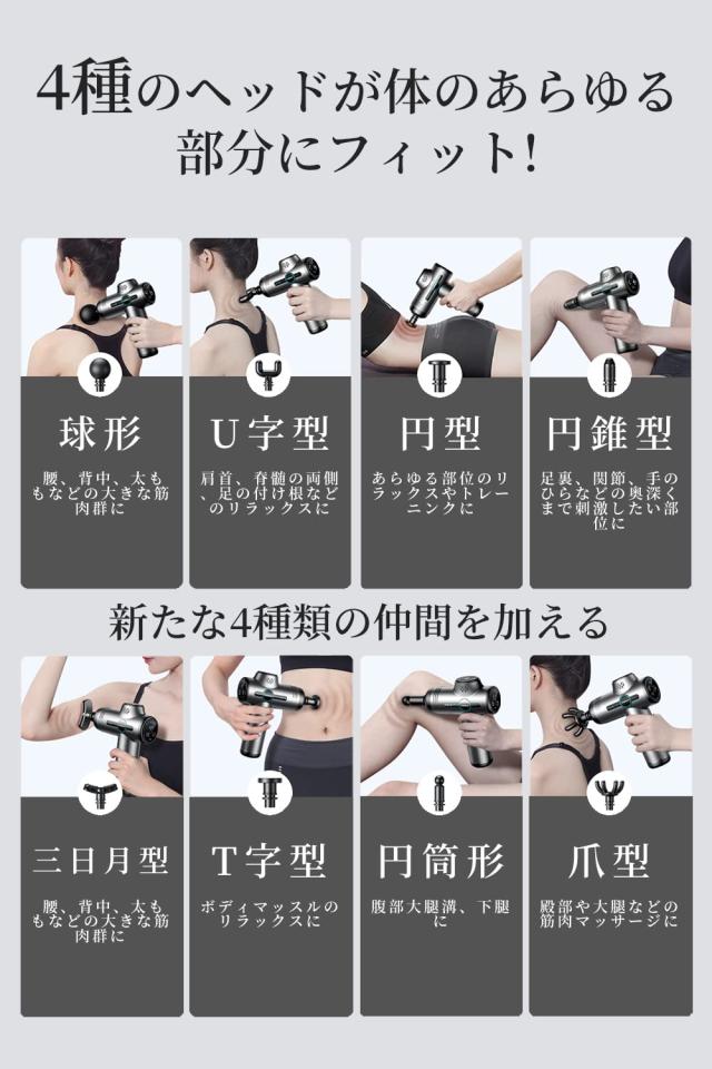 【広い適用範囲・アフターサービス】筋膜リリースガンは、男性、女性、子供を問わず、どなたでもお使いいただける製品です。本製品は高級感のある見た目と実用性を兼ね備えた製品ですので、友人、上司、親戚、または高齢者への贈り物として最適です。弊店では徹底した検品や品質保障を約束いたします。ご購入後1年間メーカー保証が付いておりますので、ご使用中に何か疑問がございましたら、ご気軽に弊店カスタマーサポートまでお問い合わせください。万が一初期不良があった場合は、当店までご連絡ください。不良品の場合は直ちに交換または返品返金対応をいたします。以上、あらかじめご了承ください。1年間のアフターサービス保証。