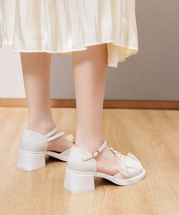 パンプス ヒール5cm 夏用 サンダル 太いヒール リボン レース チャンキーヒール ロリータ ラウンドトゥ ストラップ アンクルストラップ レディース 上品 シンプル オシャレ オフホワイト ブラック 通学 通勤 日常 コスプレ 結婚式 ピアノ 発表会 パーティー