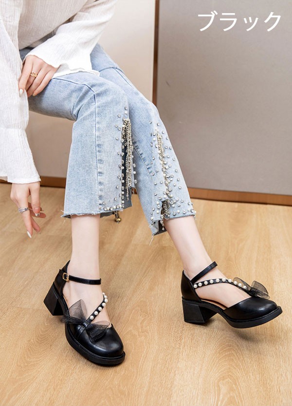 パンプス ヒール5cm 夏用 サンダル 太いヒール リボン レース チャンキーヒール ロリータ ラウンドトゥ ストラップ アンクルストラップ レディース 上品 シンプル オシャレ オフホワイト ブラック 通学 通勤 日常 コスプレ 結婚式 ピアノ 発表会 パーティー シューズ 靴 イベント 謝恩会 演奏会 演出 司会 お出かけ デート 大きいサイズ 22.5〜24.5 df181m4m4zr