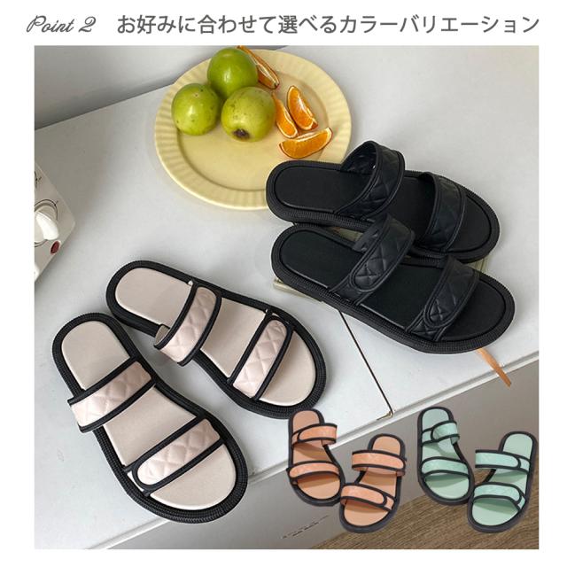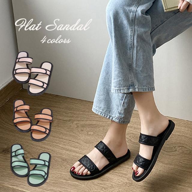 ベルトデザインのストラップがおしゃれなフラットサンダルです。