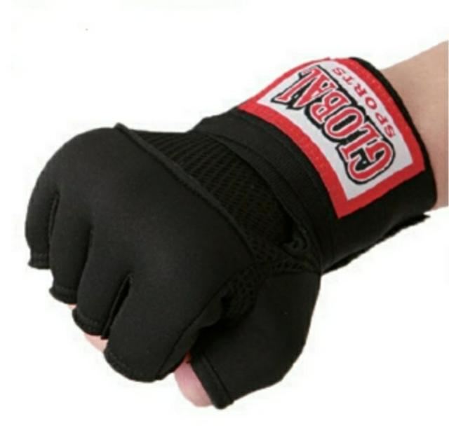 【ボクシング 簡単バンテージ】グローバルスポーツ ファンシージェルラップ FJW-070 黒 フリーサイズ バンテージの長さ:150cm(伸縮) 左右1組