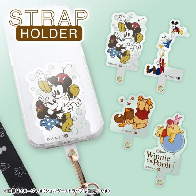 ミッキー&ミニー、ミッキー&フレンズ、プーとはちみつ、プーとピグレット、スマートフォンのドレスアップとケースの機能性UPを同時に叶える、ストラップホルダー。