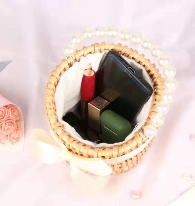 かごバッグ パール パールカゴバッグ パール付 パール付バッグ 浴衣カバン 浴衣かばん 浴衣 カバン 巾着バッグ 籐カゴバッグ