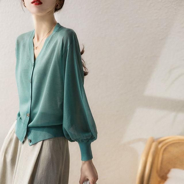 ニットトップス セーター 春 夏 レディース ニットセーター バルーンスリーブ おしゃれ 可愛い シースルー 通勤 オフィス S M L XL 2XL