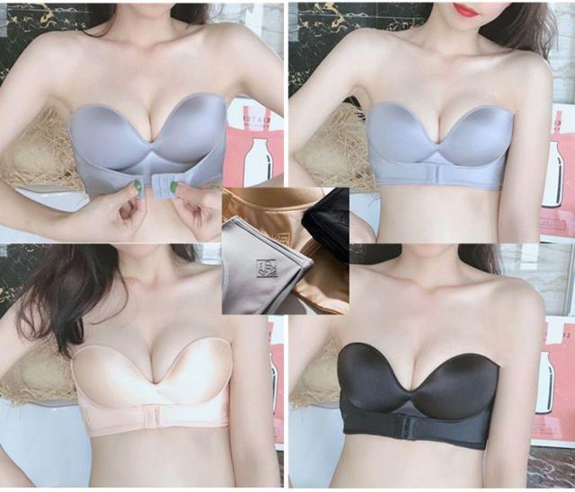 ストラップレスブラ 盛れる 落ちない ノンワイヤー 育乳ブラ ブラ 盛り 谷間 バストアップ 垂れ防止 前開き 滑り止め ズレにくい 下着 ドレス
