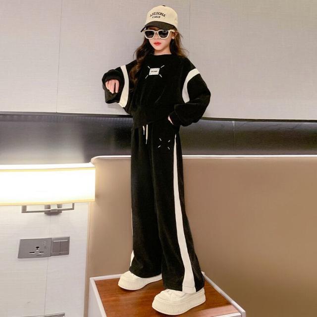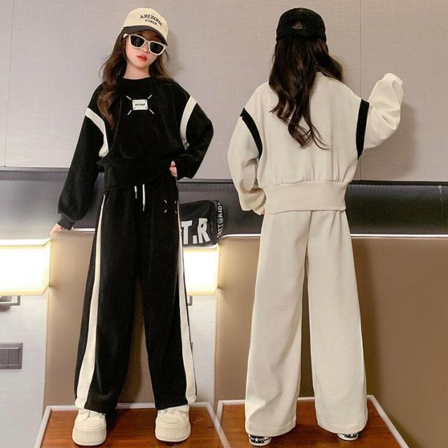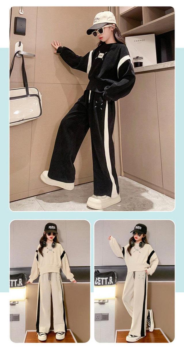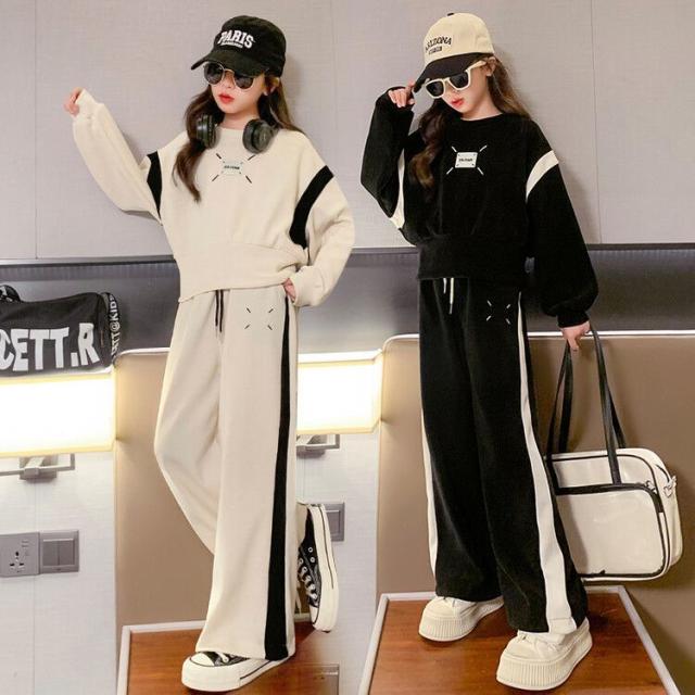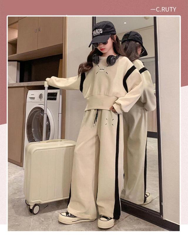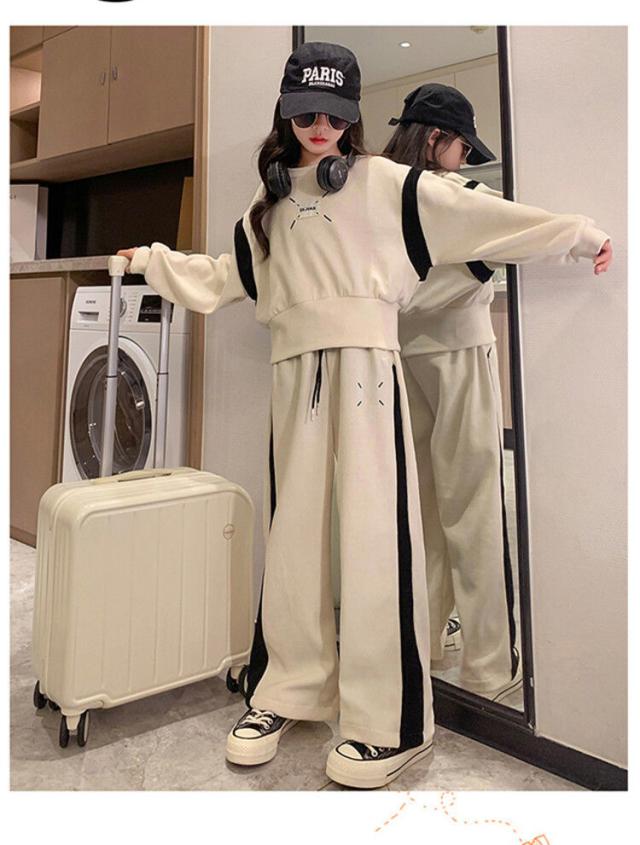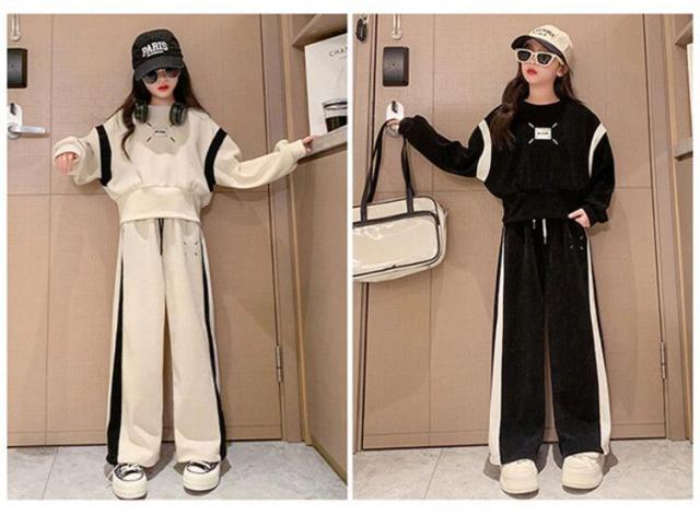子供ジャージ 上下セット スウェット 2点セット 女の子 運動着 春秋 長袖 Tシャツ パーカー 長ズボン スポーツウェア トレーナー ワイドパンツ カジュアル お出かけ 韓国風