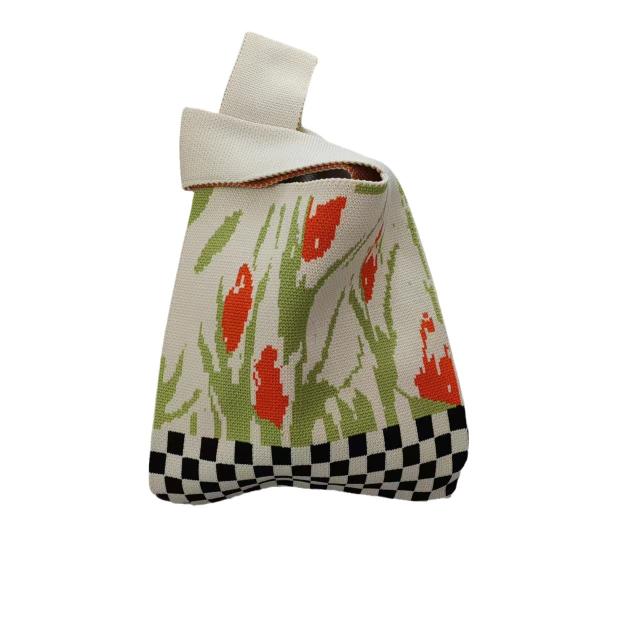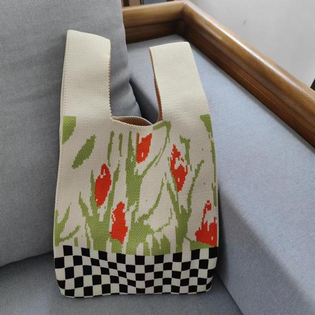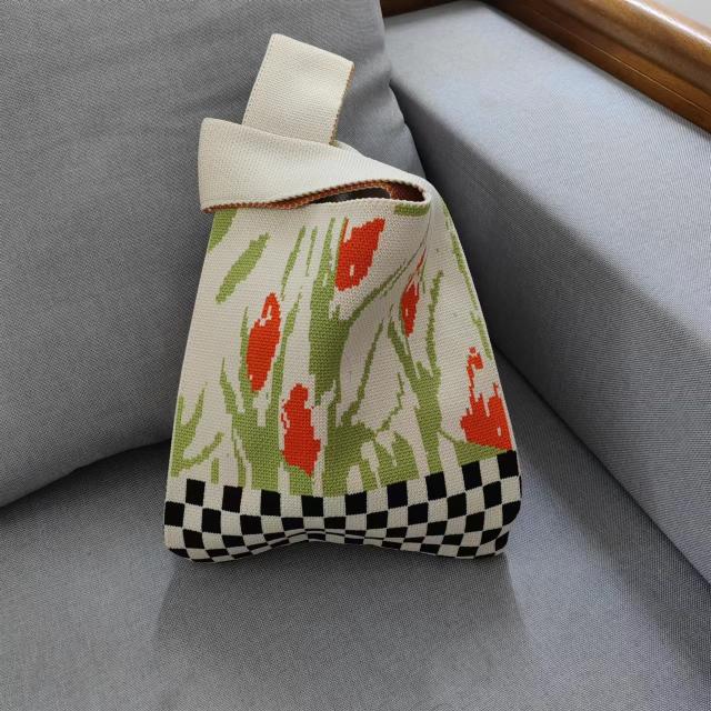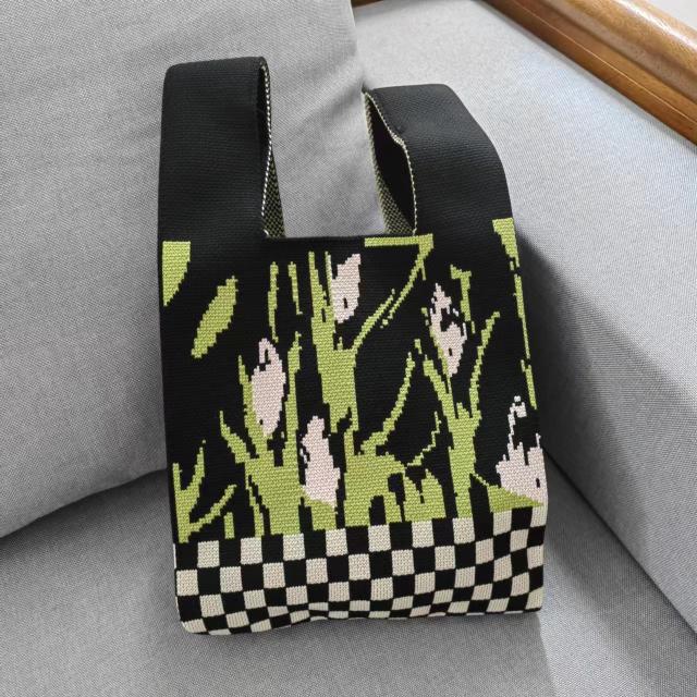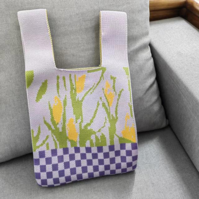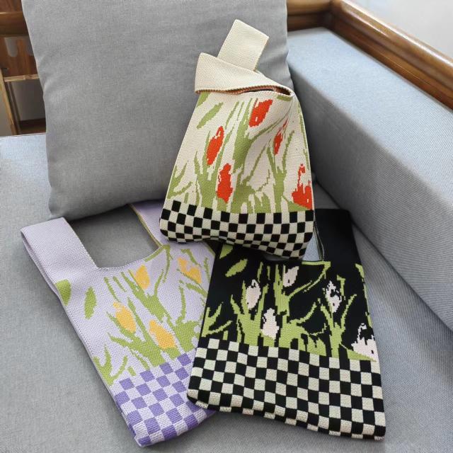 ハンドバッグ チェック柄 花柄 ニットバッグ ミニトート ミニトートバッグ 手提げ かばん レディース 春 夏 秋 冬 ミニサイズ おしゃれ