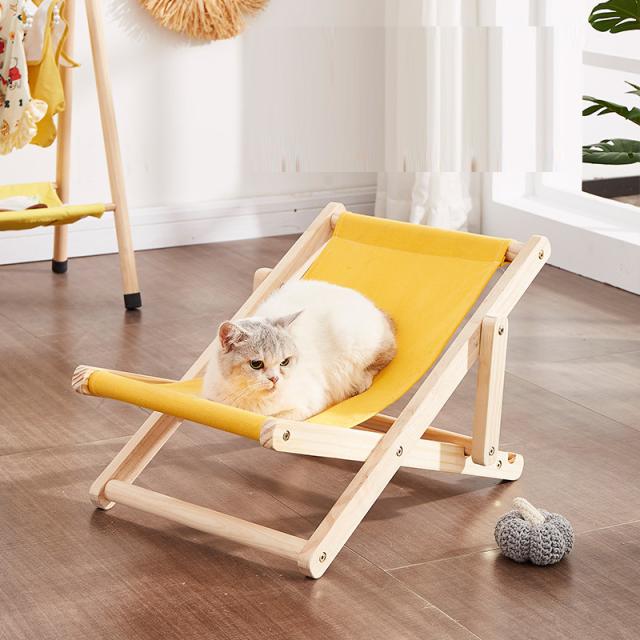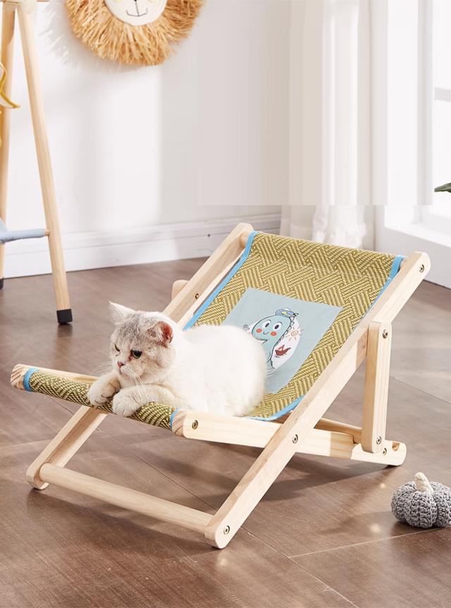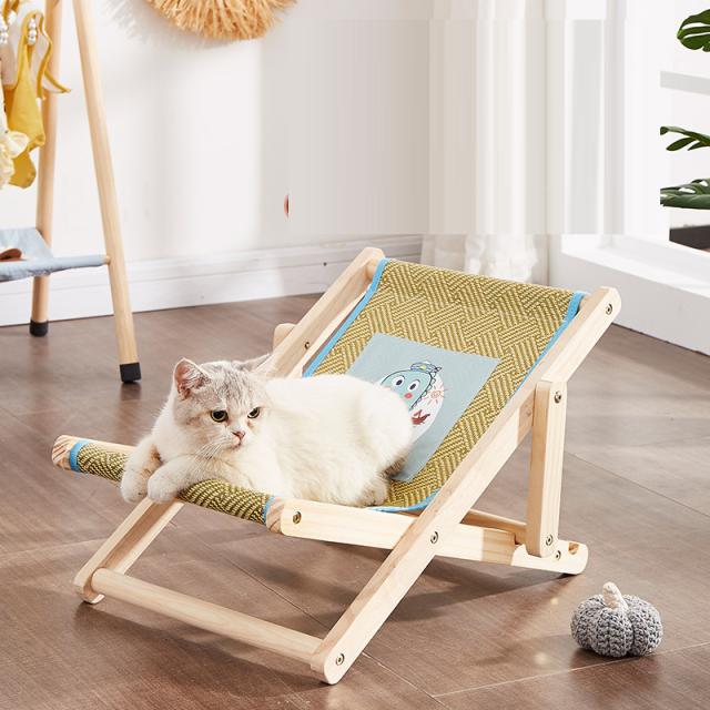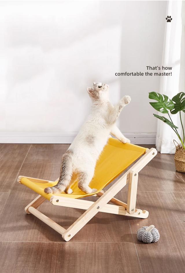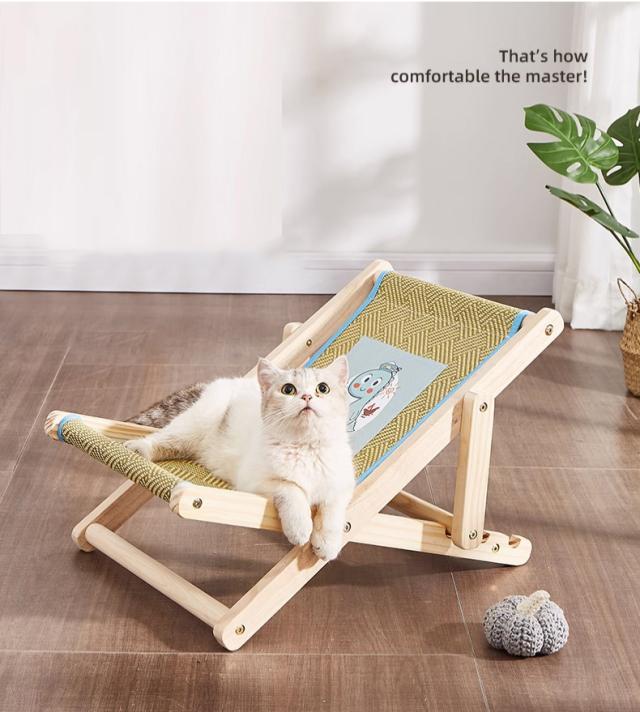 ラウンジチェア 猫用チェア 猫ベッド キャットラウンジ ペットベッド ペット用品 ハンモック 木製 休憩用 4段階調節 寝具 室内 夏用 お洒落