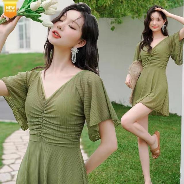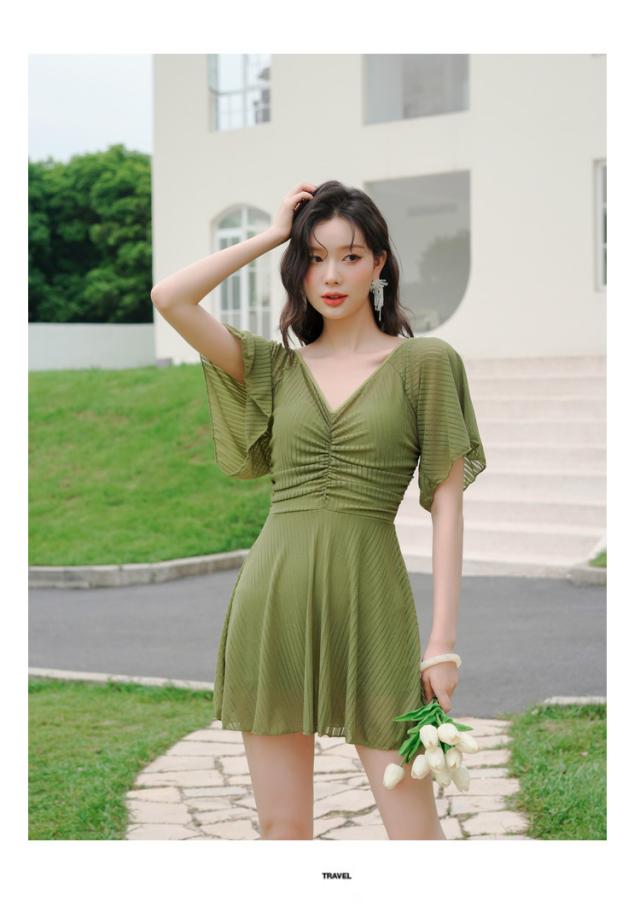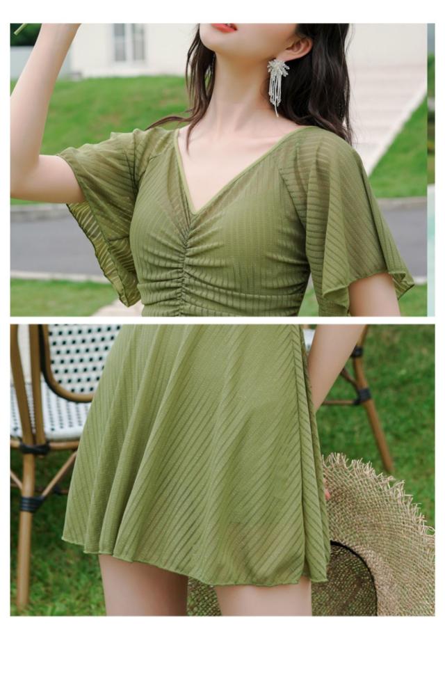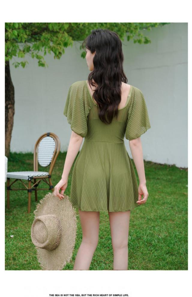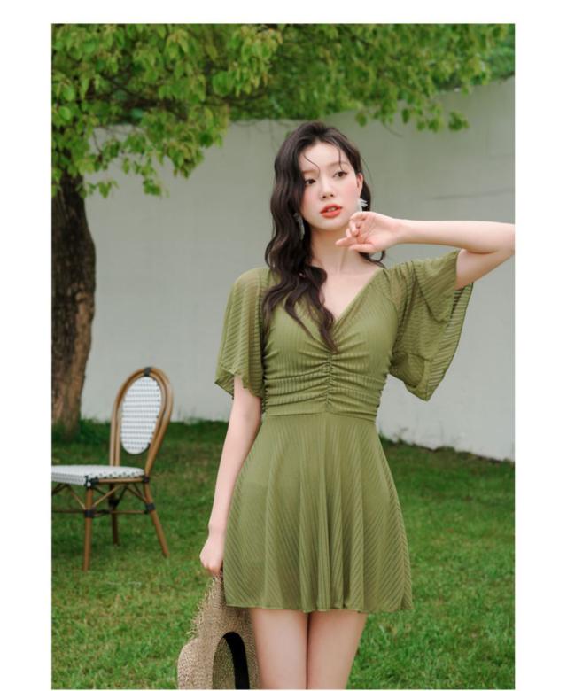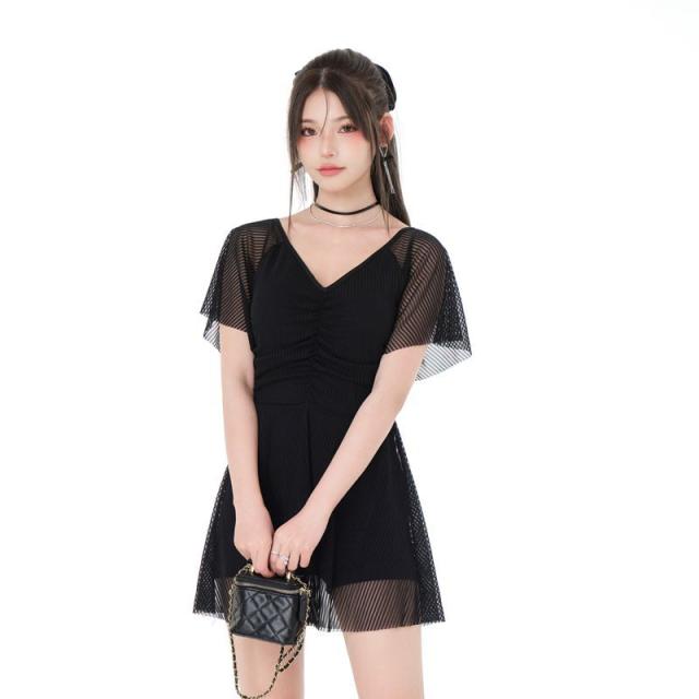 送料無料 フリルワンピ 女性 大人 みずぎ 水着 レディース ワンピース 体型カバー水着 大きいサイズ 無地 黒 フリル 袖 ハイウエスト 露出控えめ カットアウト