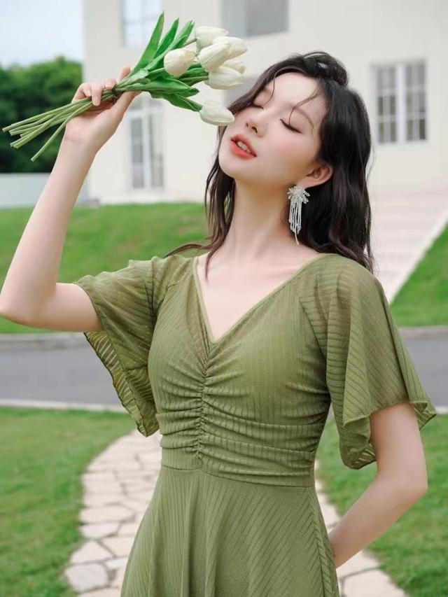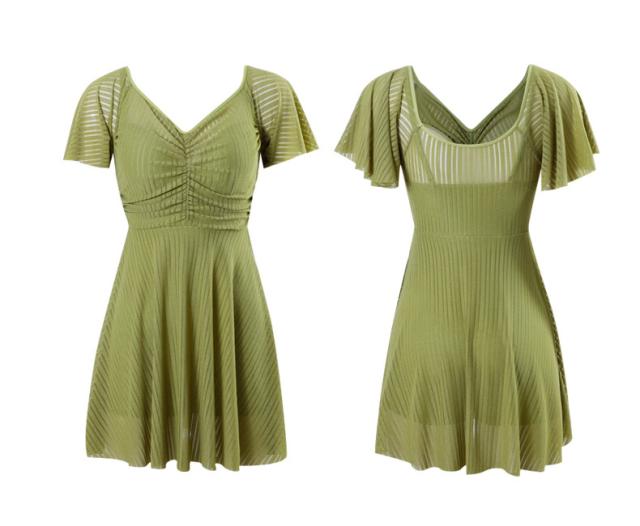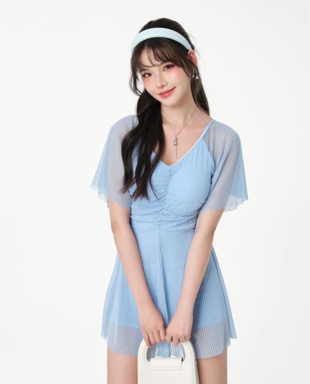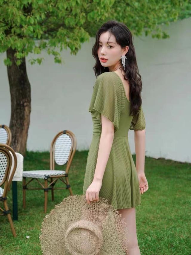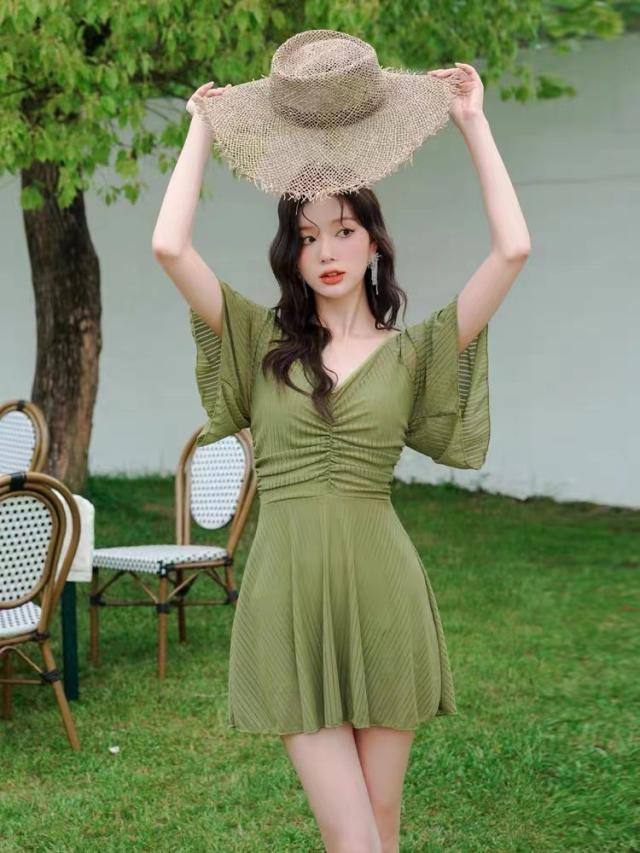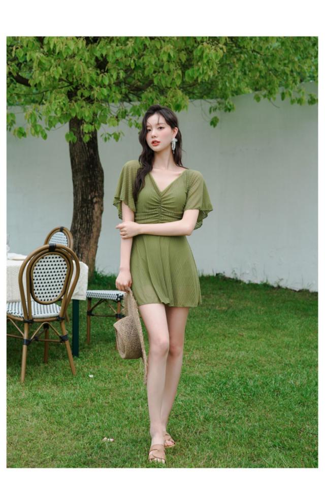 送料無料 フリルワンピ 女性 大人 みずぎ 水着 レディース ワンピース 体型カバー水着 大きいサイズ 無地 黒 フリル 袖 ハイウエスト 露出控えめ カットアウト