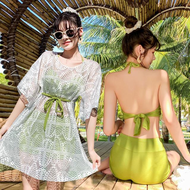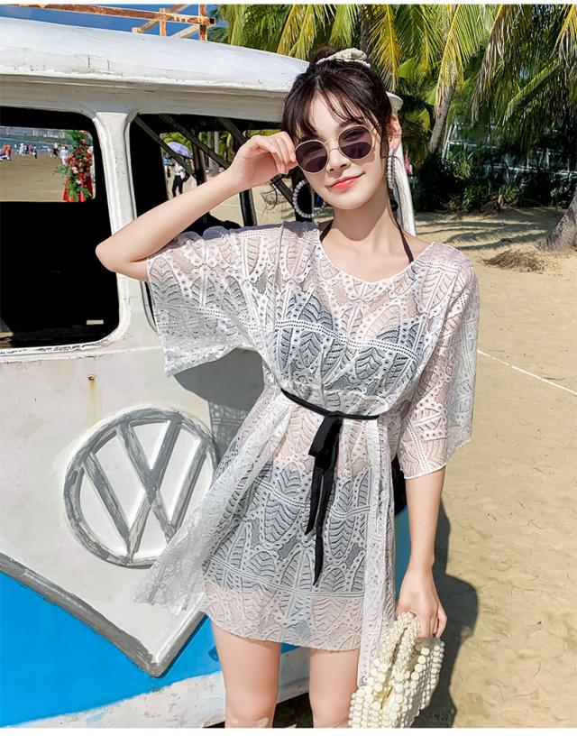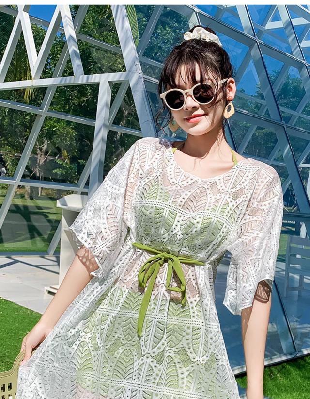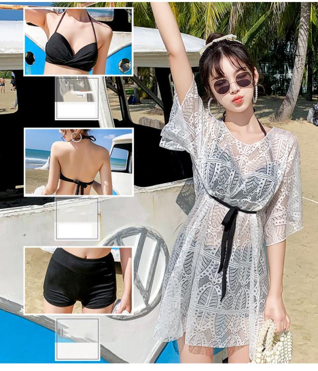 3点セット 水着セット セパレート 透け感 レース ブラウス 長袖 ショートパンツ ビキニ パッド付き 中学生 高校生 体型カバー おしゃれ