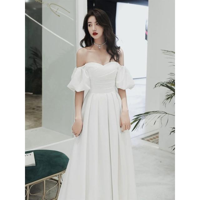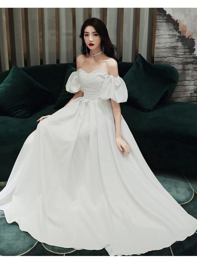2丈があり!ロングドレス ウェディングドレス パーティードレス 花嫁ドレス バルーン袖 二次会 上品 ワンピース 刺繍ドレス お呼ばれ ピアノ会 着痩せ 韓国 マキシ 二次会 披露宴 結婚式 ロング丈 オシャレ 大きいサイズ ホワイト