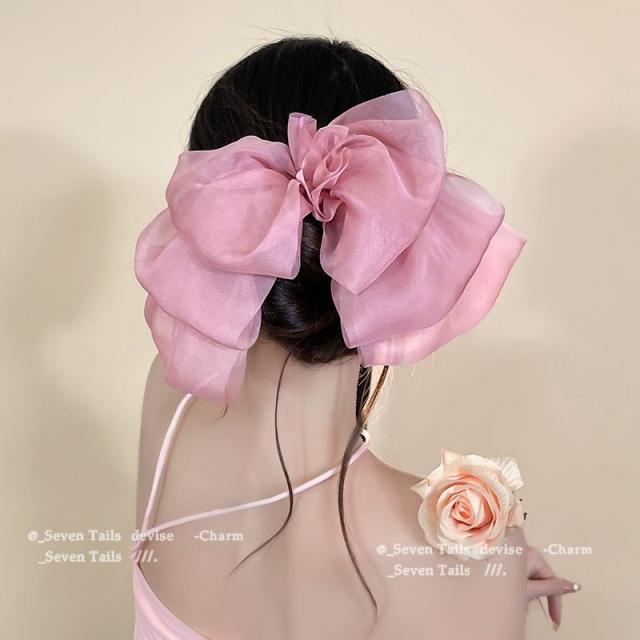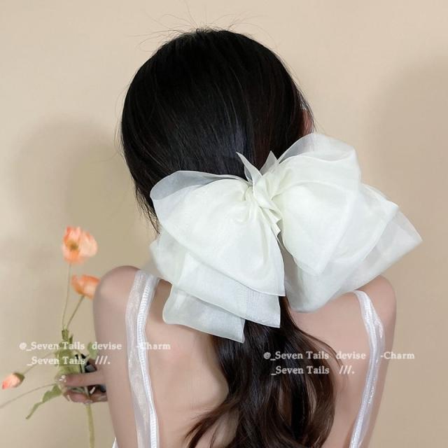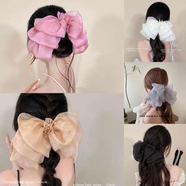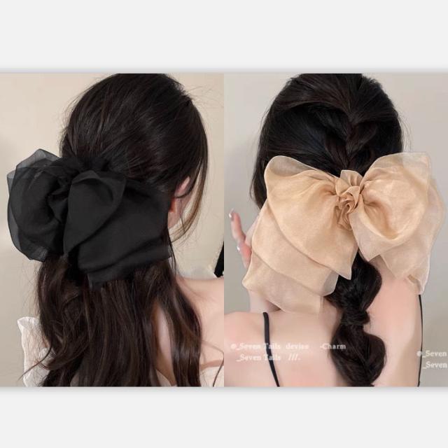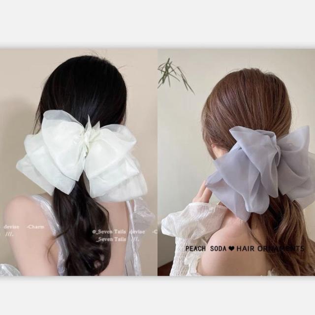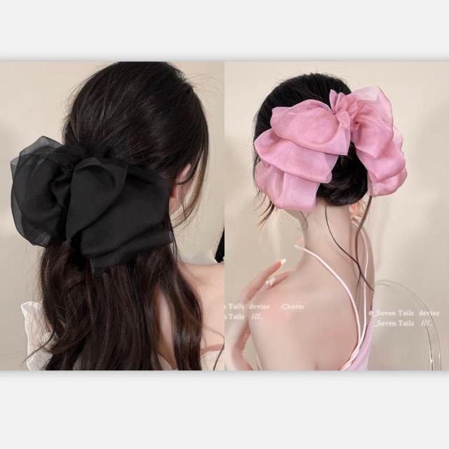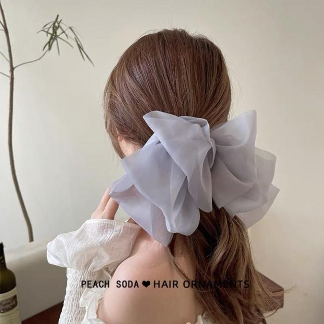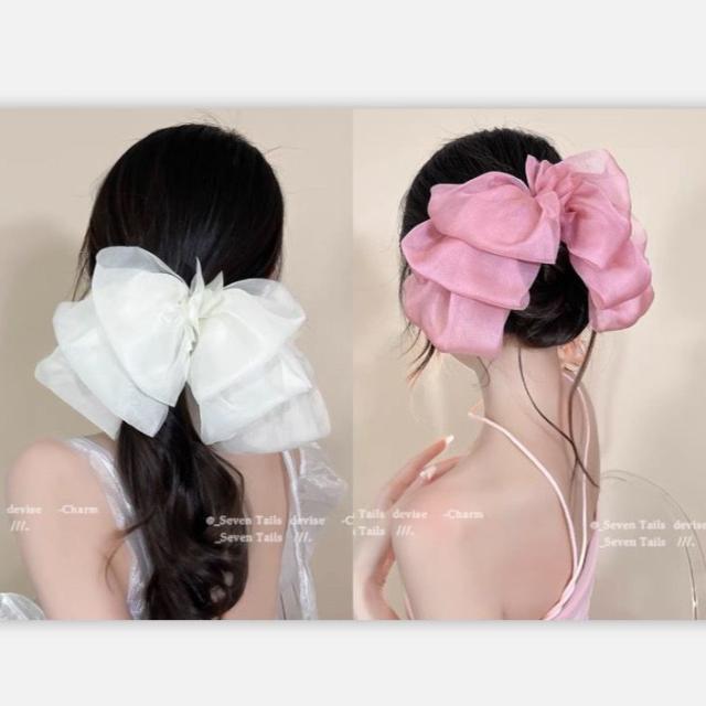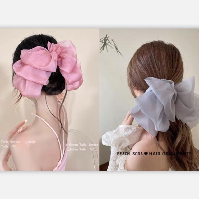 送料無料 リボンヘアクリップ ヘアアクセサリー 結婚式 ヘアクリップ リボン シースルー 大きめ ブラック ホワイト ピンク ブラウン グレー 可愛い きれいめ おしゃれ 髪 多い 髪飾り