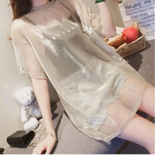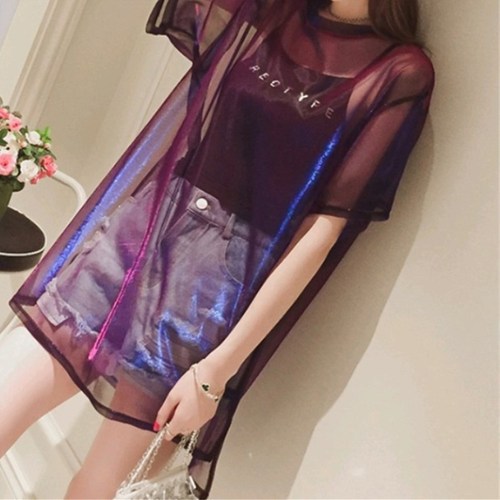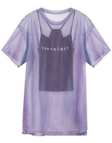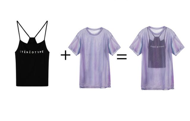 カットソー シースルー キャミソール インナー セット Tシャツ 半袖 2点セット ダンス衣装 トップス 夏 透け感 肌見せ 重ね着 メッシュ セクシー 光沢 アシンメトリー ヒップホップ ストリート