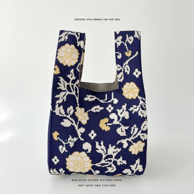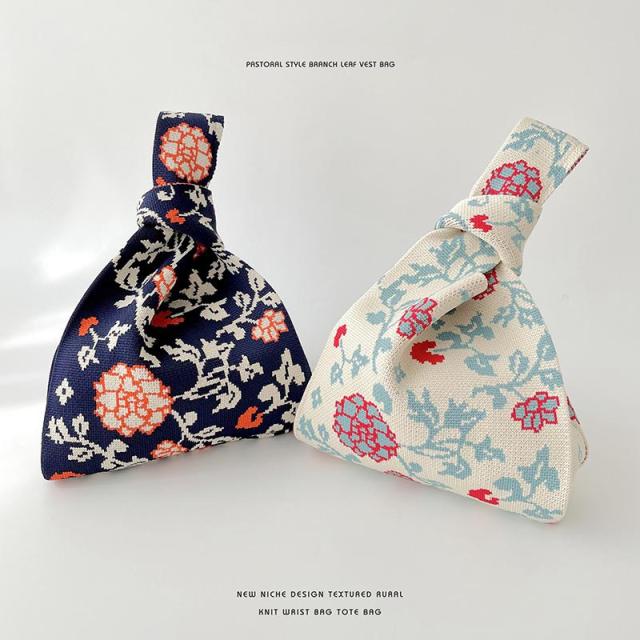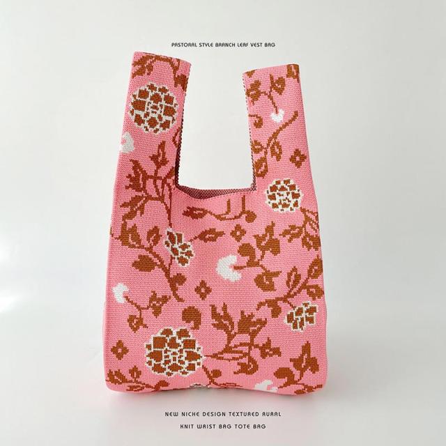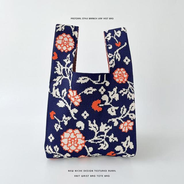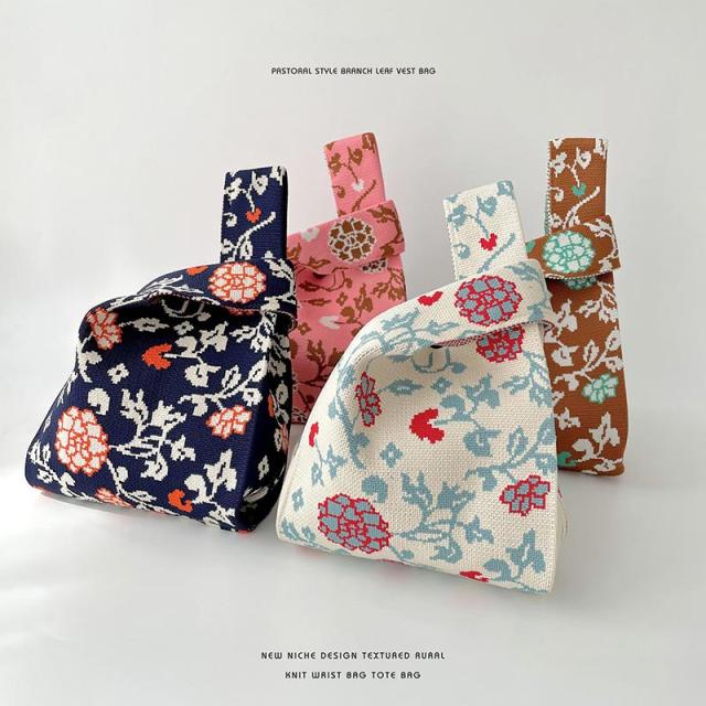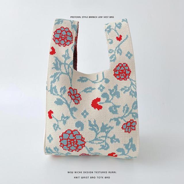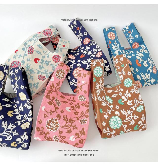 ハンドバッグ レディース ニットバッグ ミニトート ミニトートバッグ かばん 手提げバッグ ミニサイズ 花柄 おしゃれ 春 夏 秋 冬