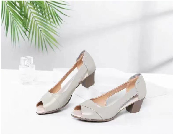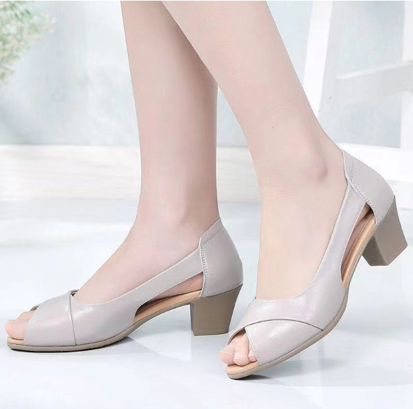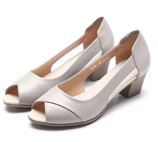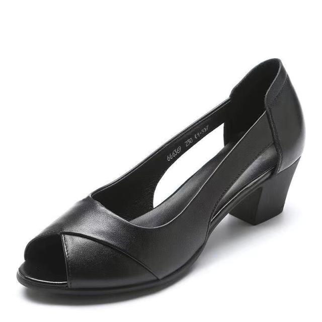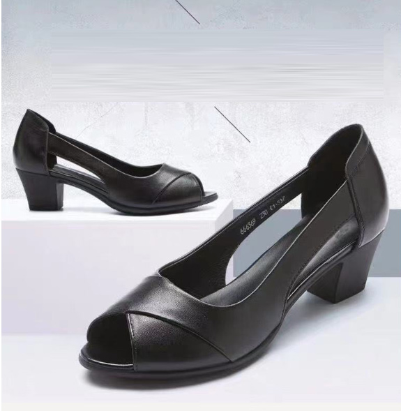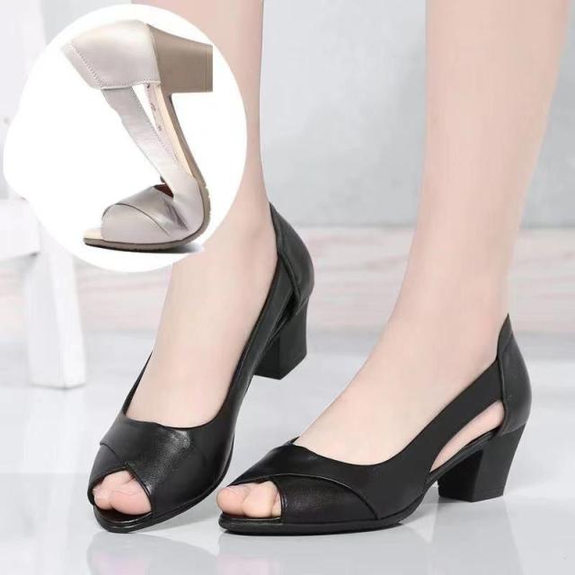 ヒール4.6cm 柔らかい パンプス 痛くない オープントゥ チャンキーヒール 美脚 歩きやすい 太めヒール 低いヒール 滑り止め 通勤 オフィス コンフォートシューズ 22.5-25cm
