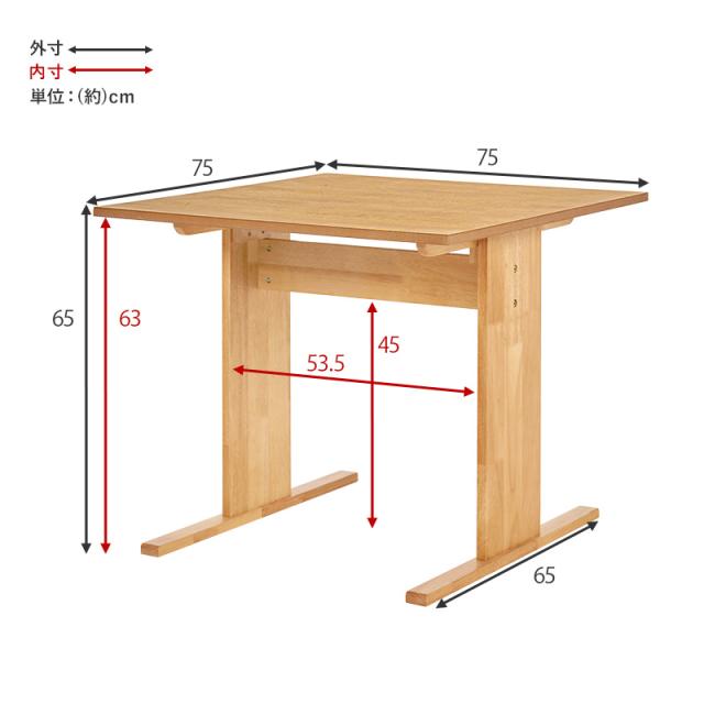 ダイニングテーブル 2人 テーブル 2人掛け おしゃれ 食卓テーブル 食卓テーブル2人用 単品 幅75cm 北欧 ナチュラル テーブルのみ ファム テーブル 単品 ダイニング ナチュラル 天然木 低め