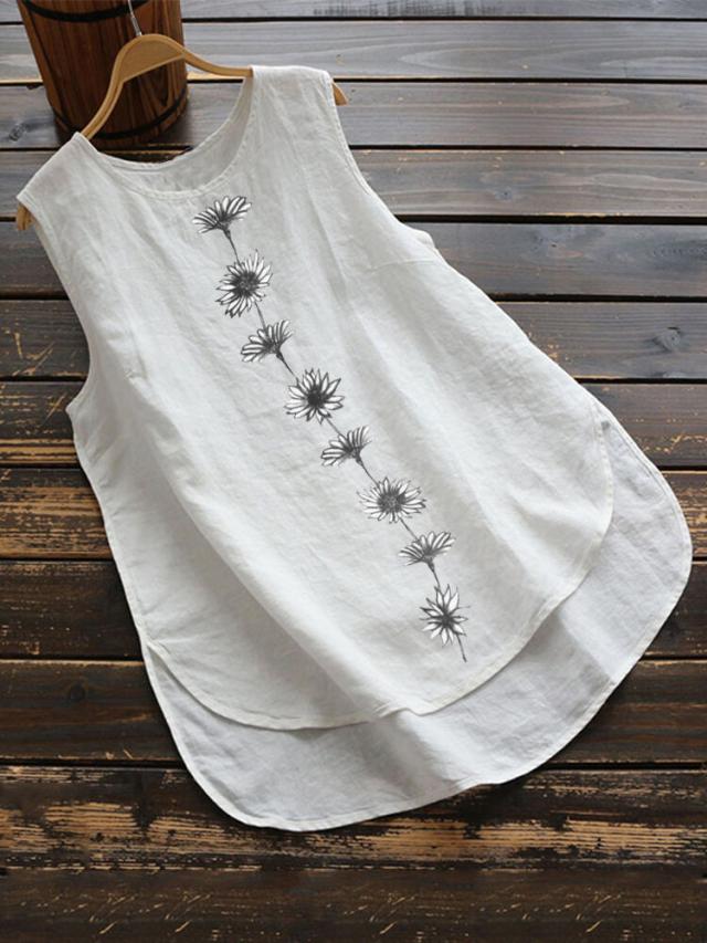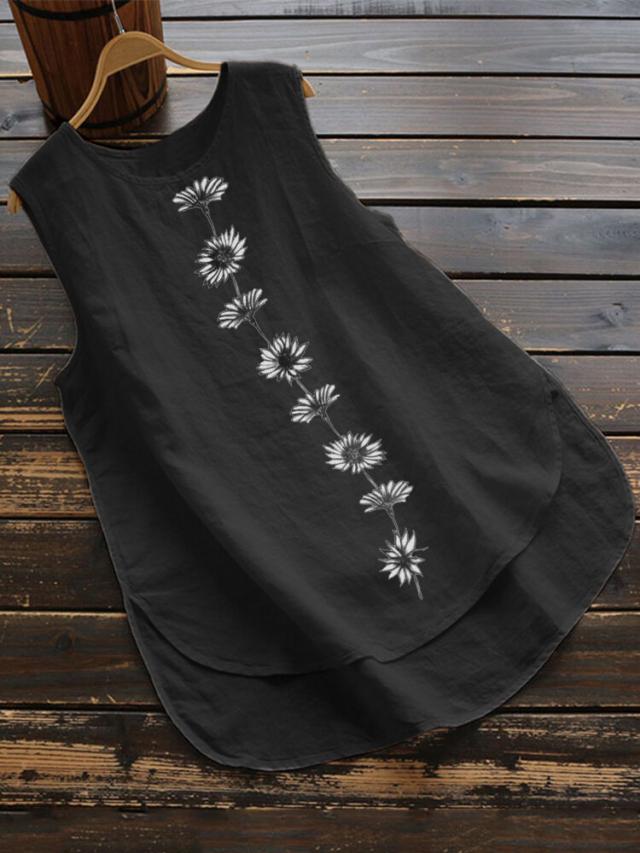 刺? タンクトップ レディース カットソー キャミール 花柄刺? ラウンドヘム 袖なし レイヤード Aライン チュニック丈 ノースリーブ オーバーサイズ ゆったり 春 夏