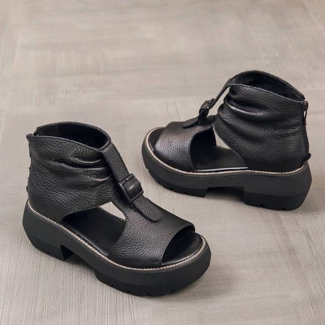 ブーツサンダル ペタンコ 厚底サンダル フラットシューズ 厚底シューズ ショートブーツ コンフォート オープントゥ 夏用 通気性 カジュアル 春 靴 パンプス オシャレ 美脚 ブラック ベージュ