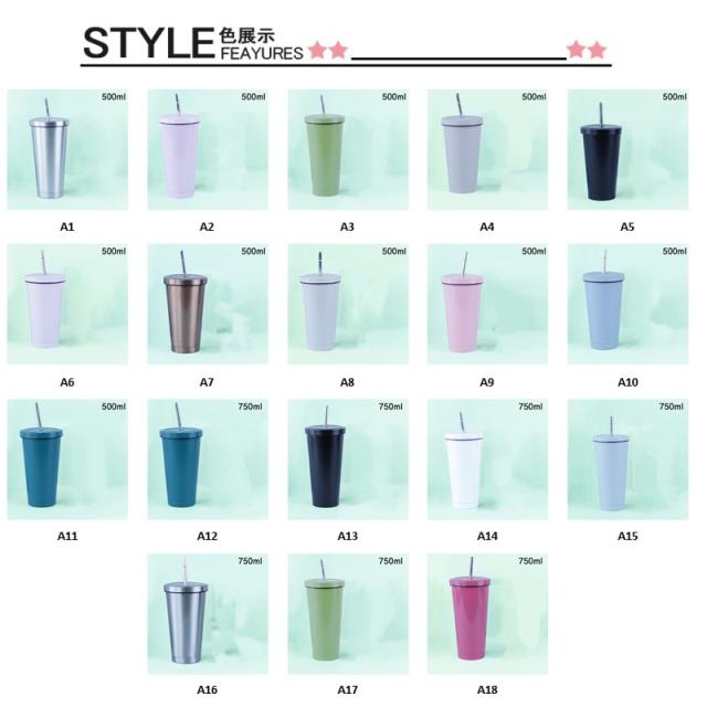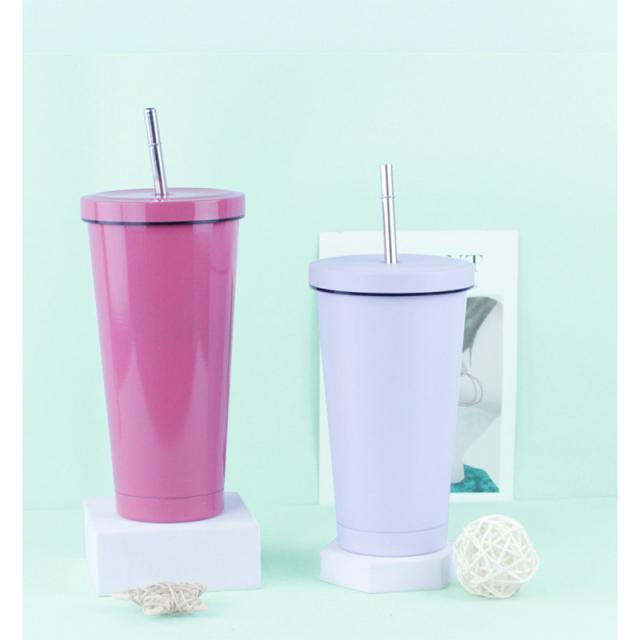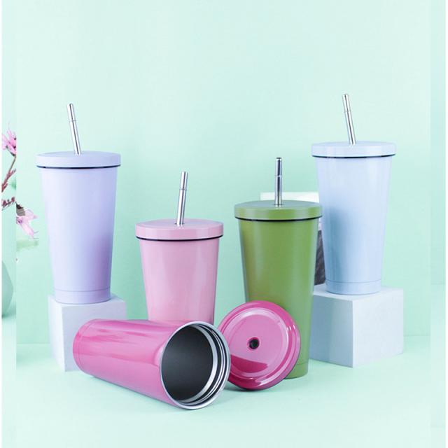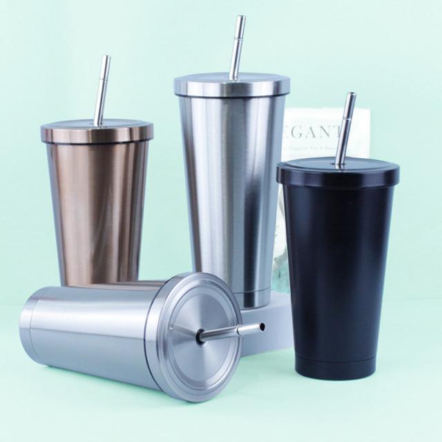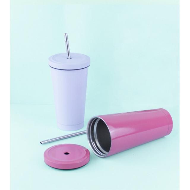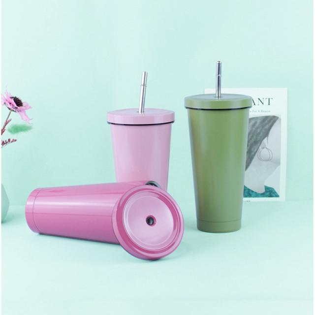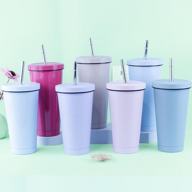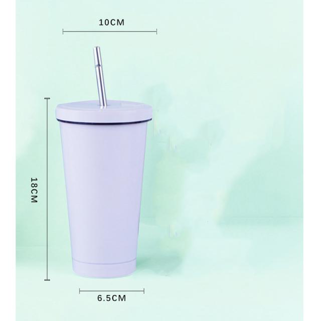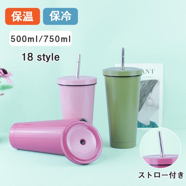 タンブラー 水筒 500ml 蓋付き 真空断熱 ストロー付き 保温 車載せでき 保冷 持ち運び マグボトル 二重構造 ステンレス