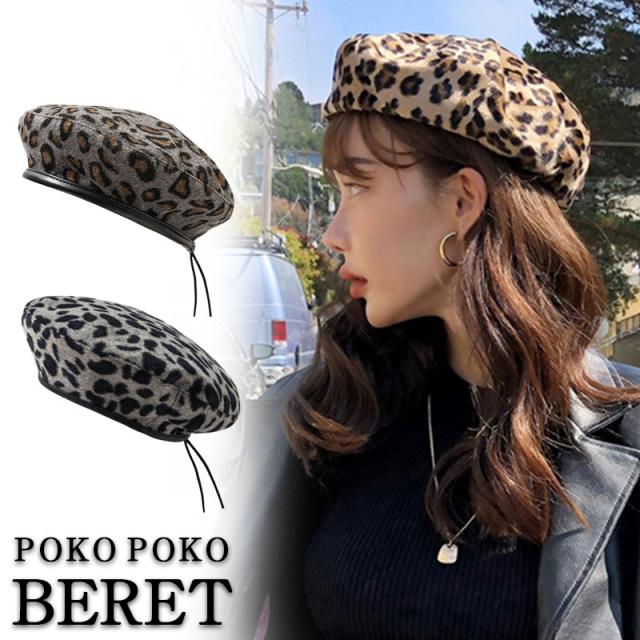 ポイント超超祭 帽子 ベレー ベレー帽子 レディース ニット ヒョウ柄 メンズ 女性 30代 40代 おしゃれ かわい ベレー帽 秋冬 コットン ギフト 防寒