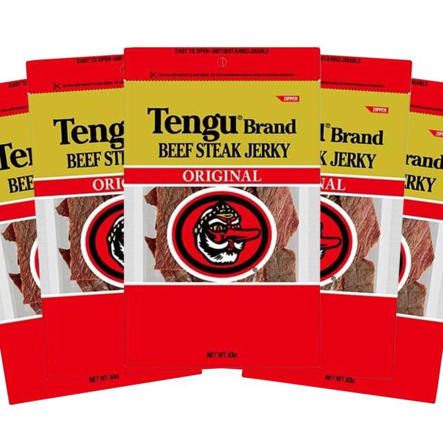 テングブランドのビーフジャーキーは厳選された牛肉を使用し、しょうゆをベースにした味付けになっています。