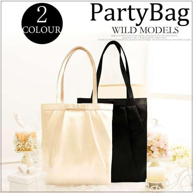 フロントのリボンと上品なプリーツがポイントのたっぷり収納パーティーサブバッグ。
