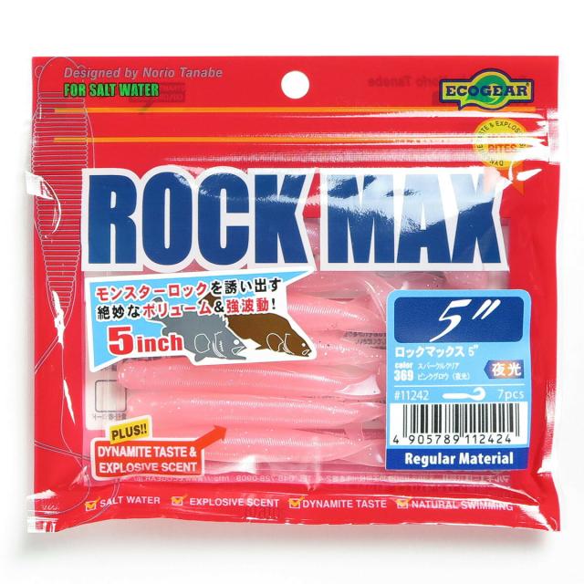 商品名:ワーム エコギア Ecogear ロックマックス 5インチ 369 スパークルクリアピンクグロウ(夜光) 7個入