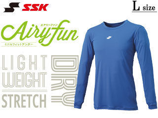 SSK エスエスケイ エアリーファン ローネック 長袖アンダーシャツ 【ブルー】【Lサイズ】SCF230LL 軽量 クイックドライ