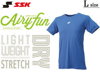 SSK エスエスケイ エアリーファン ローネック 半袖アンダーシャツ 【ブルー】【Lサイズ】SCF230LH 軽量 クイックドライ