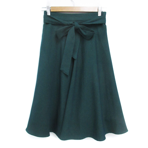 【中古】ロペピクニック ROPE Picnic フレアスカート ミモレ丈 リボン付き 無地 38 緑 グリーン /FF54 レディース
