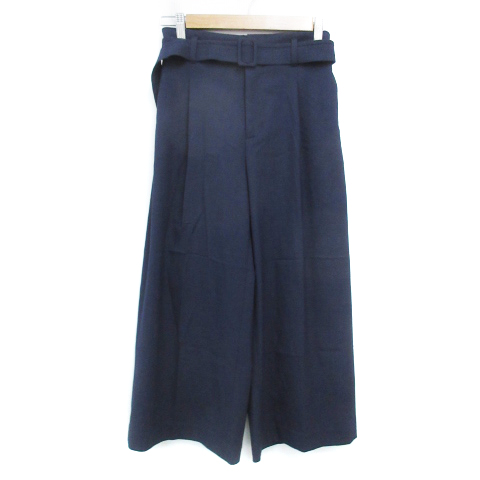【中古】メイソングレイ ワイドパンツ イージーパンツ ロング丈 ベルト付き 0 紺 ネイビー /FF15 レディース