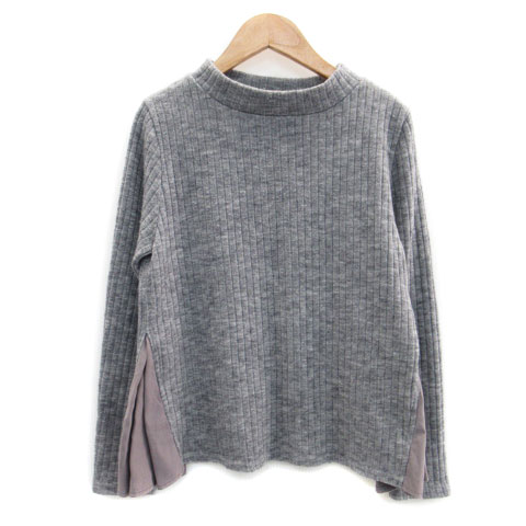 【中古】テチチ Te chichi リブニット カットソー 長袖 ハイネック M グレー /MS37 レディース