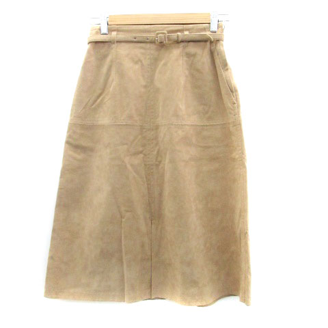 【中古】ユナイテッドトウキョウ フレアスカート ミモレ丈 ベルト付き スエード調 1 茶色 ブラウン レディース