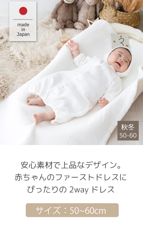 セレモニードレス 退院着 出産準備 男の子 女の子 秋 冬 春 日本製 綿100 新生児 帽子 ベビードレス フォーマル シンプル カバーオール 2way 記念撮影
