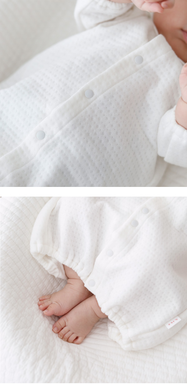 お肌にあたる部分は綿100%で敏感肌の赤ちゃんにも安心。