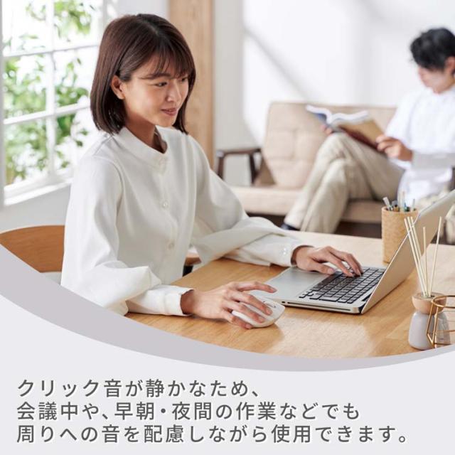 ●クリック音が静かなため、会議中のパソコン操作や、早朝・夜間の作業など、在宅勤務のときでも周りへの音を気にせず使用できます。