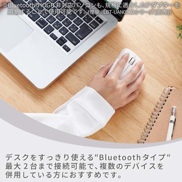●Bluetooth(R)HOGPに対応したパソコンであれば、レシーバーを接続することなくマウスを使用できるため、USBポートの少ないパソコンやタブレットにぴったりです。