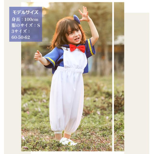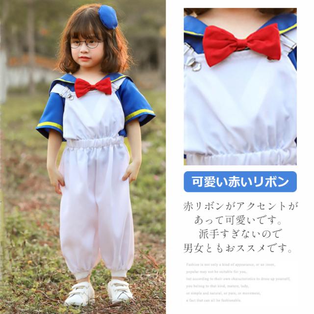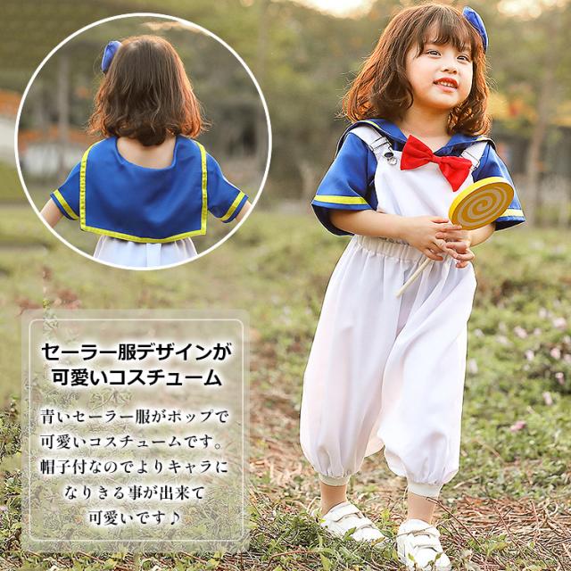 ブルーのセーラーカラーとホワイトのオーバーオールが可愛いコスチュームセットです