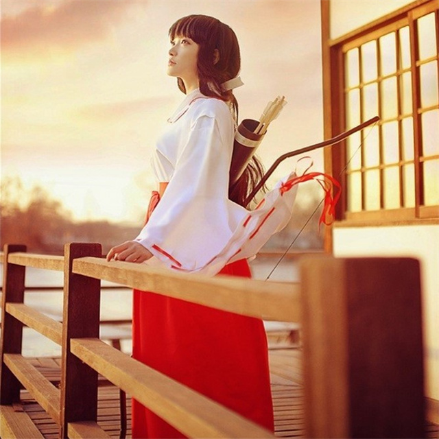 犬夜叉! 巫女さん コスチューム コスプレ 巫女 いぬやしゃ 白/赤 レディース ハロウィン 仮装 変装 セットアップ パーティー イベント 送料無料