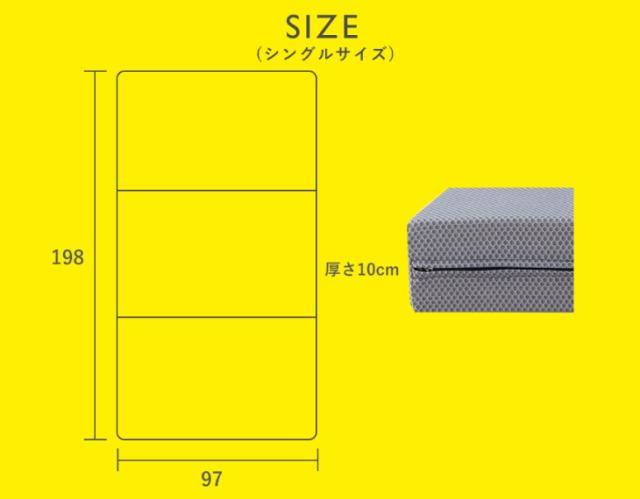 | サイズ | シングル(幅97×奥行198×厚み10cm) |
