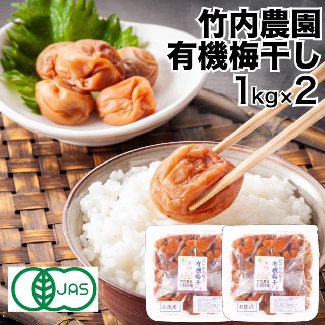 竹内農園 紀州南高梅 有機梅干 1kg×2個 2kg 有機JAS 紀州産 梅干し 保存料 着色料 無添加 うめぼし ウメボシ お徳用