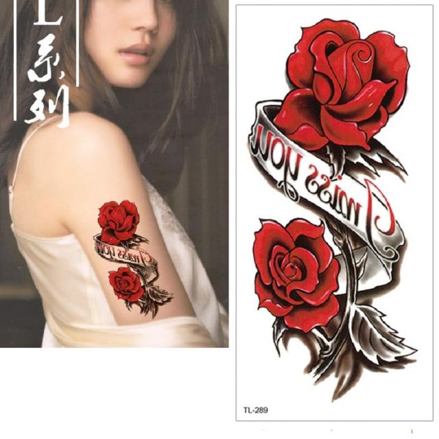 今ダケ2枚セット メール便無料 真っ赤ロゴ入り薔薇 ボディシール 真紅 情熱の薔薇 セクシー 転写シール 入れ墨 ハロウィン コスプレ タトゥシール ボディペイント