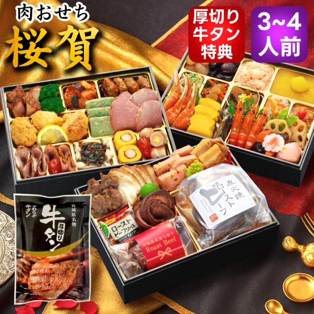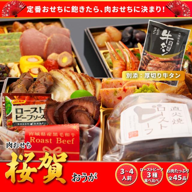 おせち 2026 おせち料理 【桜賀】 3人前 4人前 全45品 8.5寸長方 おせち料理 予約 2026年 3〜4人前 お節料理 お節 御節 osechi oseti 冷凍 冷凍おせち 肉づくし 肉おせち お肉 肉 洋風おせち 和洋おせち 和洋中おせち 洋風 蔵王福膳