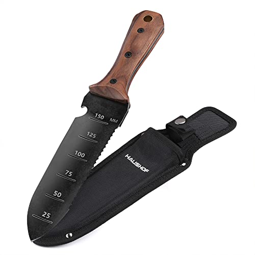 HAUSHOF 多機能園芸ツール ガーデンナイフ 山菜堀 山刀 園芸ツール スコップ ステンレス鋼 ストーンウォッシュ処理 目盛り付き ブレード
