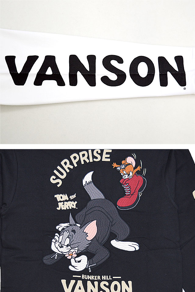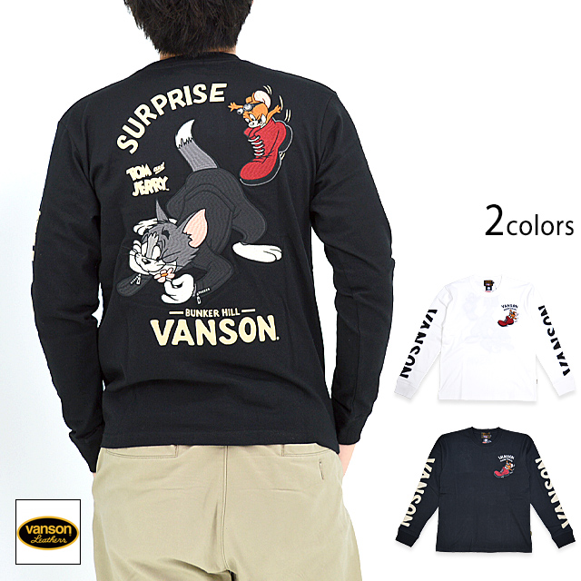 vanson×TOM&JERRYコラボ 天竺ロングTシャツ vanson TJV-2331 バンソン ヴァンソン トムとジェリー 刺繍