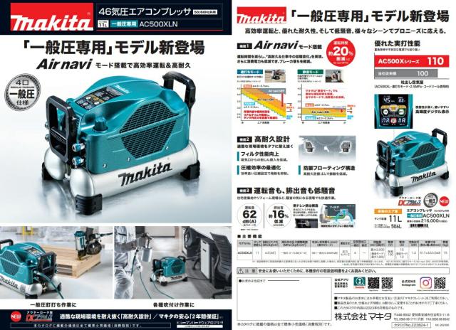 (マキタ) エアコンプレッサ AC500XLN 50/60Hz共用 タンク容量11L 一般圧専用(4口) タンク内最高圧力46気圧 makita 大型商品